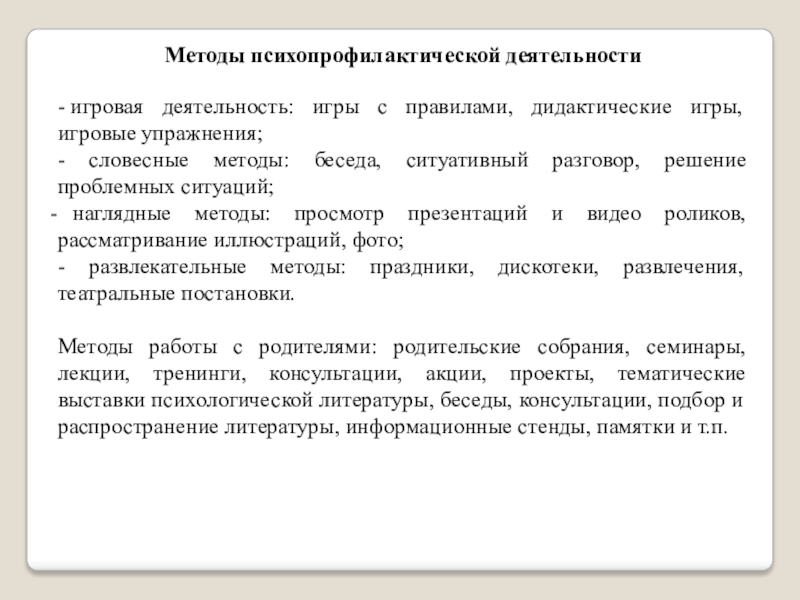 Содержание психопрофилактической работы