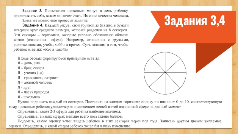 Определить, какие 2-3 сферы для ребенка наиболее значимы.