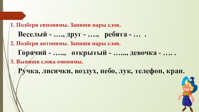 Слайд 61. Подбери синонимы. Запиши пары слов.