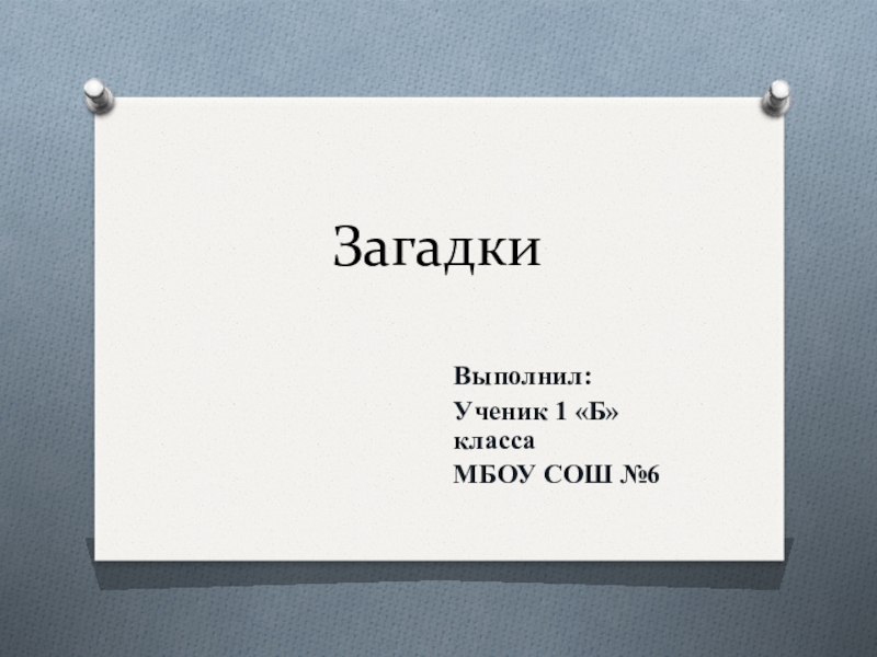 Загадки Выполнил:Ученик 1 «Б» класса МБОУ СОШ №6