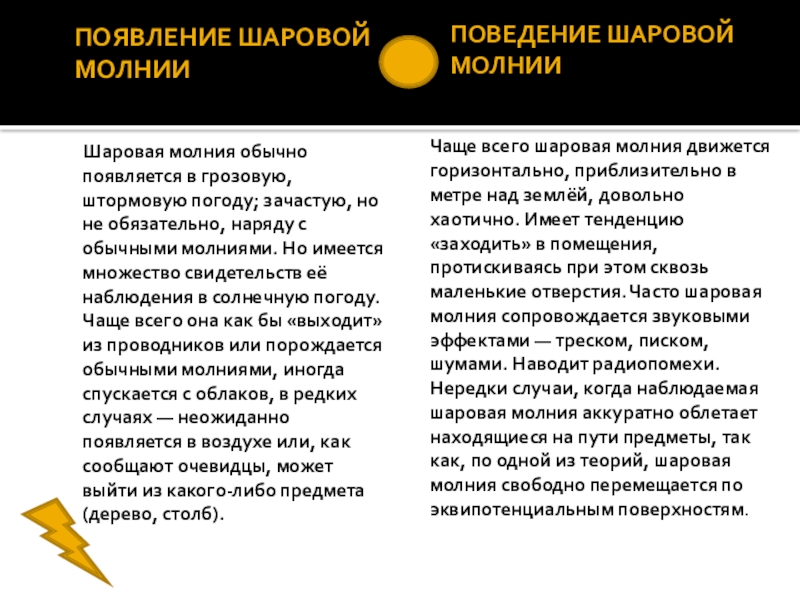 ПОВЕДЕНИЕ ШАРОВОЙ МОЛНИИ