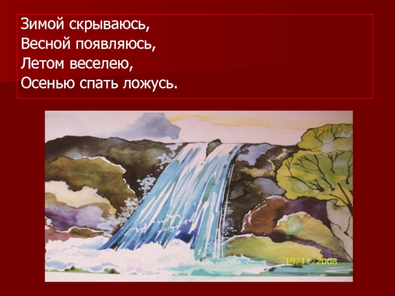 Зимой скрываюсь,Весной появляюсь,Летом веселею,Осенью спать ложусь.