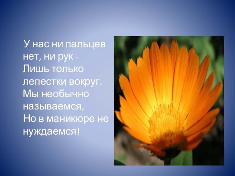 лепестки вокруг.  Мы необычно называемся,  Но в маникюре не нуждаемся!