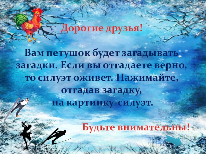 силуэт оживет. Нажимайте, отгадав загадку,
