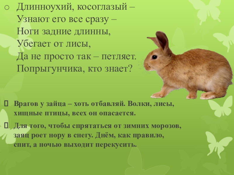 Врагов у зайца – хоть отбавляй. Волки, лисы, хищные птицы, всех он опасается.
