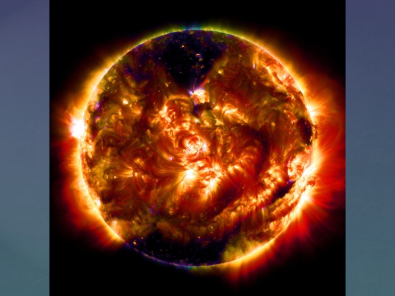 (3 слайд) Планета Солнце на самом деле выглядит не так, как мы видим ее с Земли, посмотрите пожалуйста на снимок из космоса. Она освещает и согревает землю, без него не было бы жизни. Это самая близкая к нашей планете звезда. С Земли Солнце нам кажется маленьким т.к. находится далеко от нас. Прямо на Солнце смотреть нельзя – можно испортить глаза.