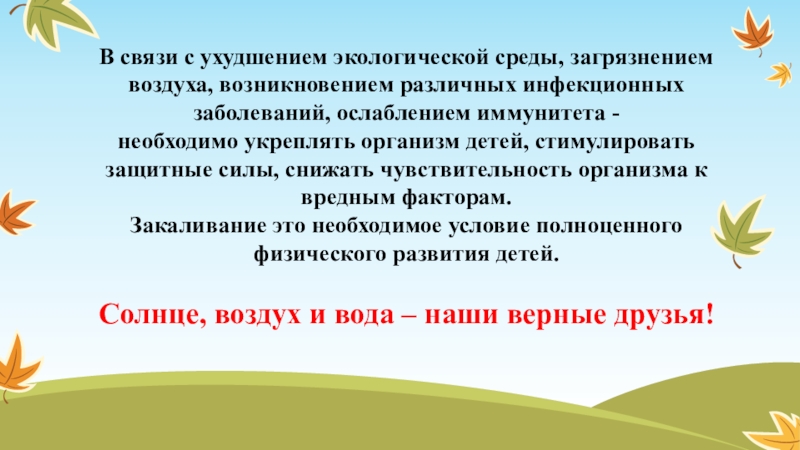 необходимо укреплять организм детей, стимулировать защитные силы, снижать чувствительность организма к вредным факторам.