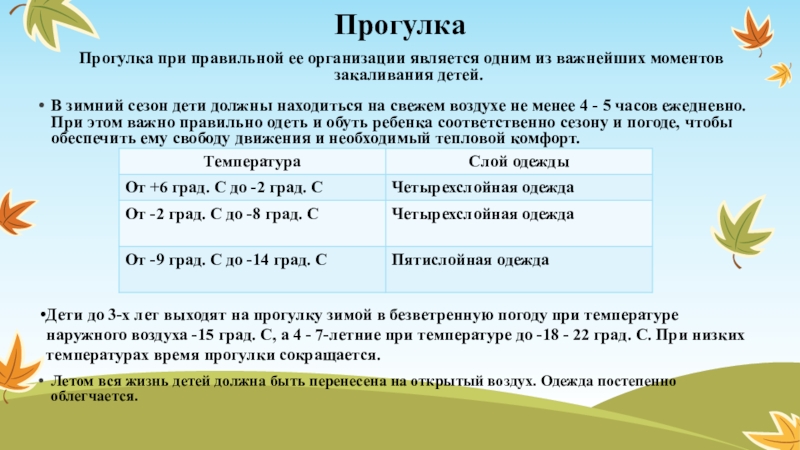 Прогулка при правильной ее организации является одним из важнейших моментов закаливания