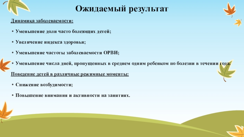 Уменьшение числа дней, пропущенных в среднем одним ребенком по болезни в течении года.