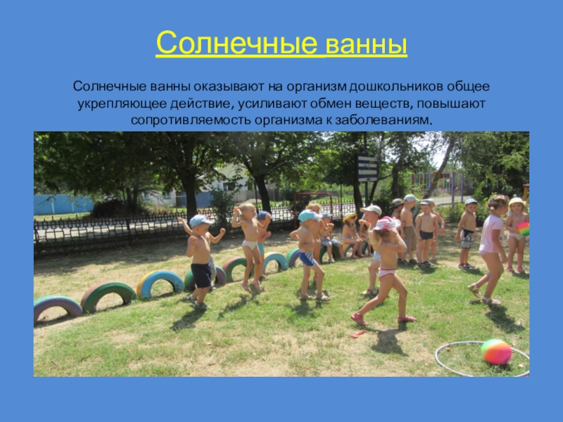 Солнечные ванны оказывают на организм дошкольников общее укрепляющее действие, усиливают