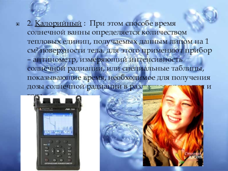 Слайд 112. Калорийный : При этом способе время солнечной ванны определяется количеством
