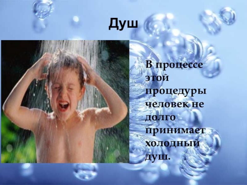 ДушВ процессе этой процедуры человек не долго принимает холодный душ.