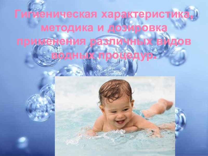 Слайд 12Гигиеническая характеристика, методика и дозировка применения различных видов водных процедур.