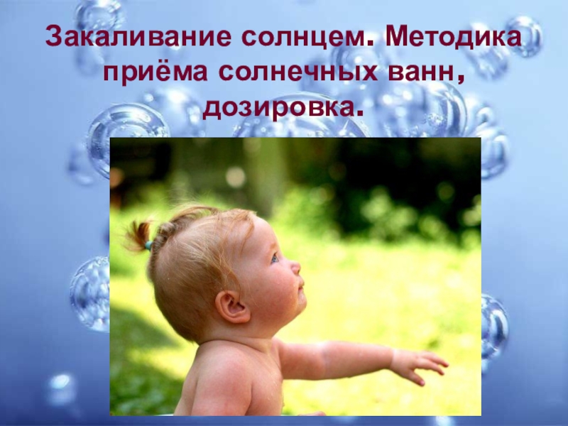 Слайд 8Закаливание солнцем. Методика приёма солнечных ванн, дозировка.