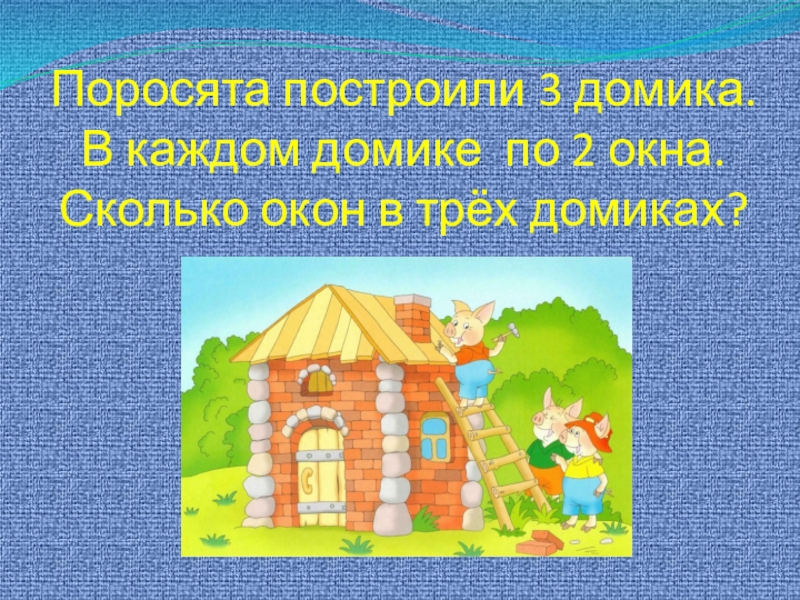 Слайд 9Поросята построили 3 домика. В каждом домике по 2 окна. Сколько