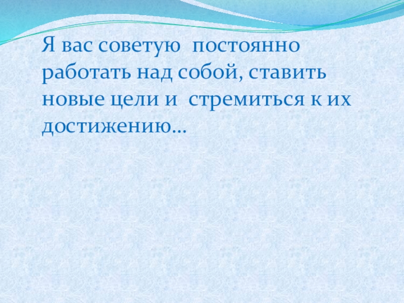 Слайд 14Я вас советую постоянно работать над собой, ставить новые цели и