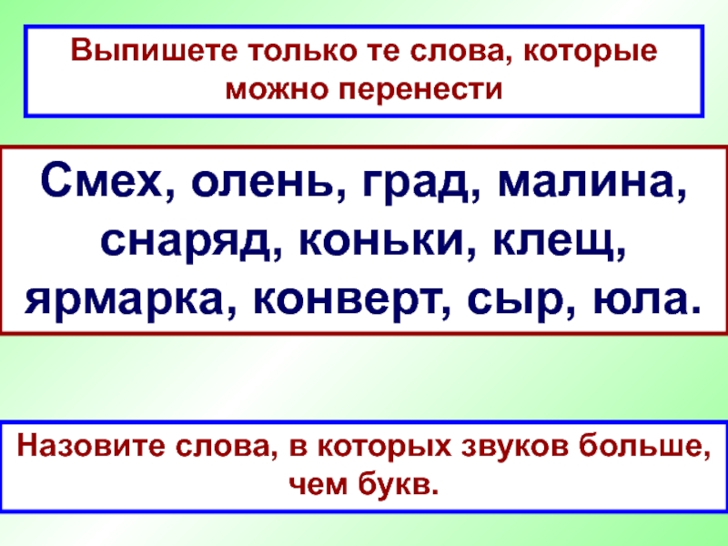 Назовите слова, в которых звуков больше, чем букв.