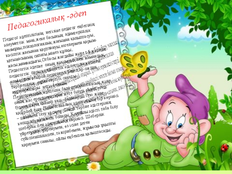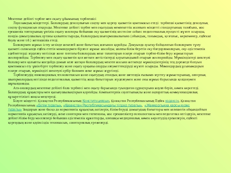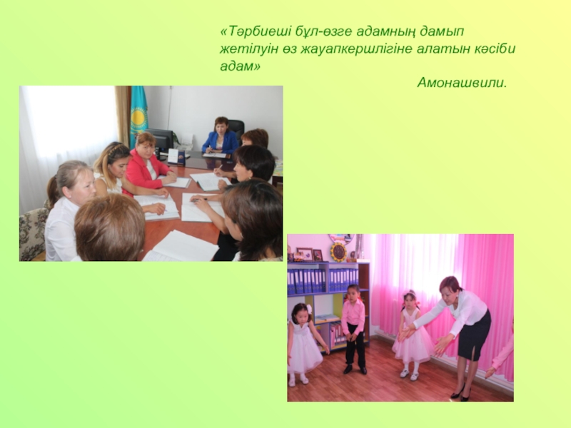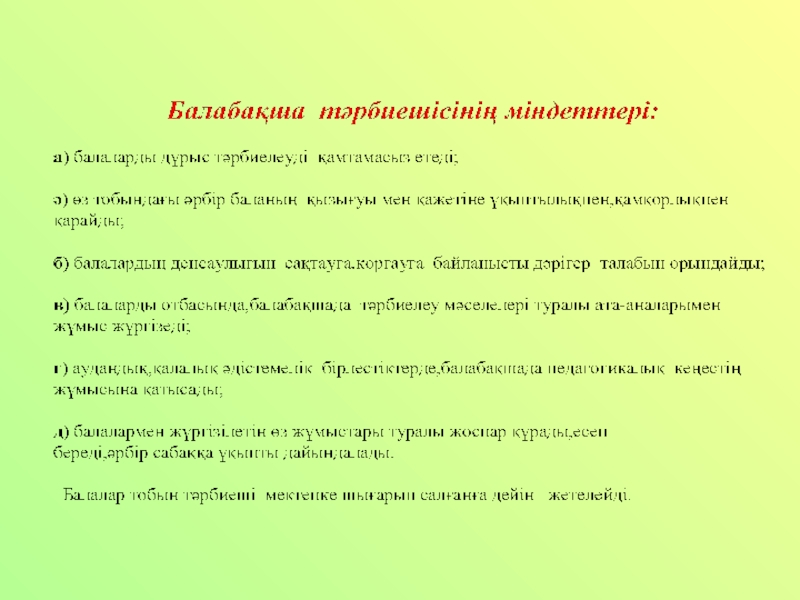 Слайд 4Мектепке дейінгі тәрбие мен оқыту ұйымының тәрбиешісі