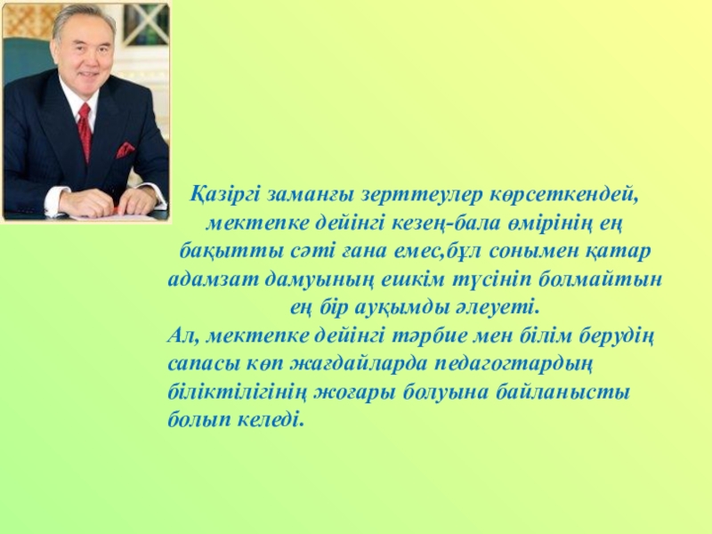 Слайд 17Жаңа заман тәрбиешісі – бұл сауатты маман, бағдарламаны және әдістемелік шараларды анықтай алатын білімді адам. Бұл бала және оның ата-анасымен