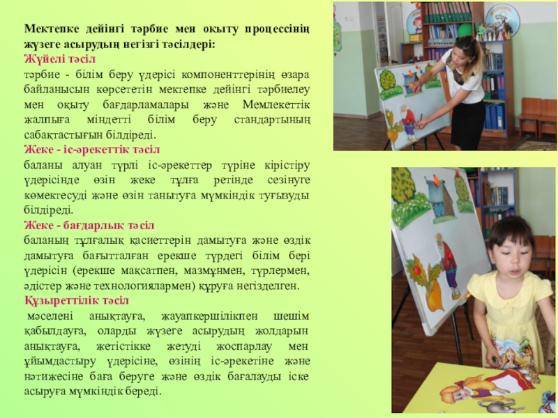 Слайд 16Мектепке дейінгі тәрбие мен оқыту процессінің жүзеге асырудың негізгі тәсілдері: