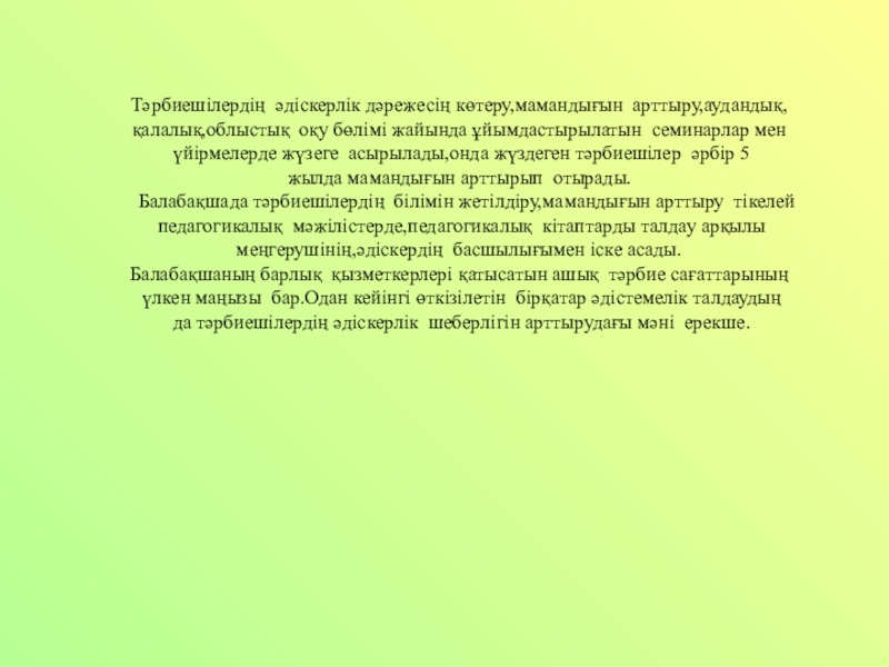да тәрбиешілердің әдіскерлік шеберлігін арттырудағы мәні ерекше.