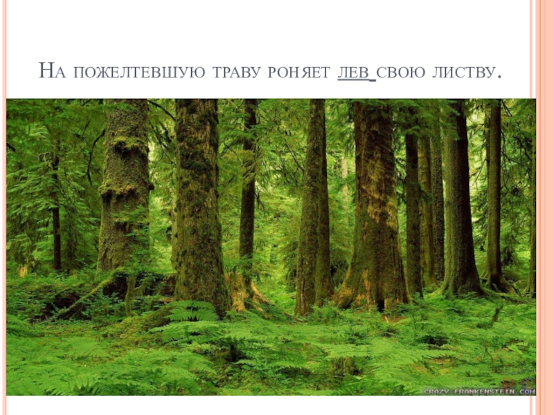 Слайд 10На пожелтевшую траву роняет лев свою листву.