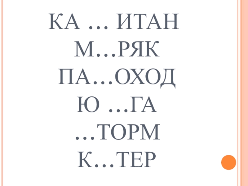 Слайд 19КА … ИТАН М…РЯК ПА…ОХОД Ю …ГА …ТОРМ К…ТЕР
