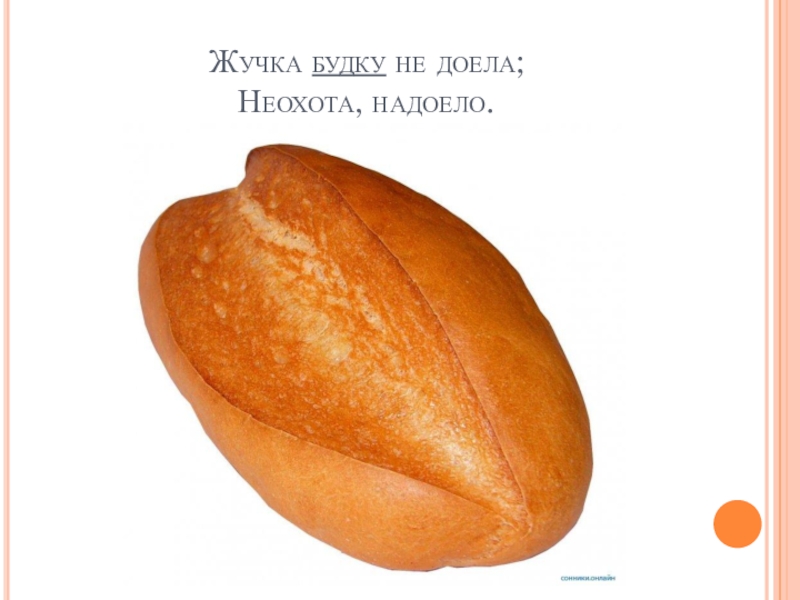 Слайд 9Жучка будку не доела; Неохота, надоело.