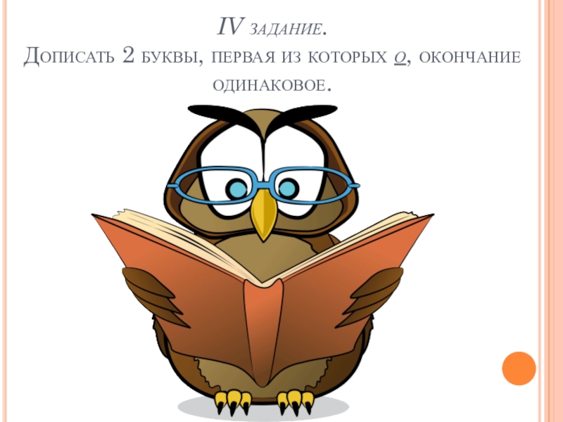 Слайд 14IV задание. Дописать 2 буквы, первая из которых о, окончание одинаковое.
