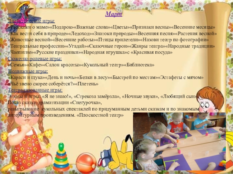 «Расскажи о маме»«Подарок»«Важные слова»«Цветы»«Признаки весны»«Весенние месяцы»