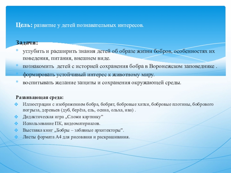 Цель: развитие у детей познавательных интересов.
