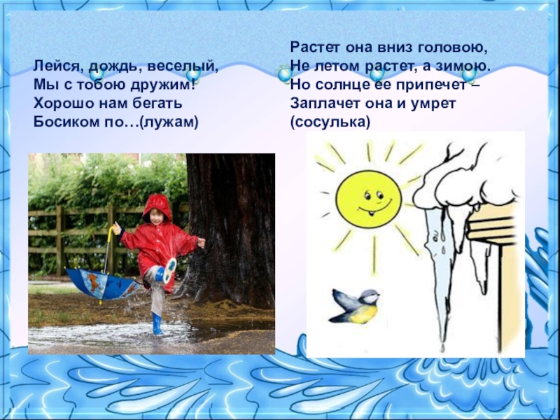 Слайд 5Значит вода – это и снег, и дождь. Она всегда разная,
