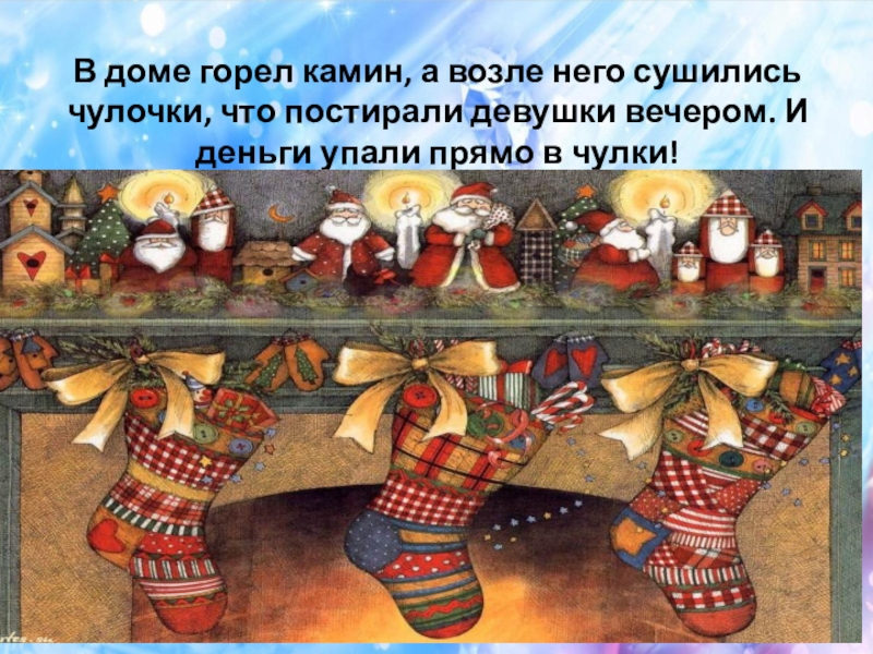 Слайд 9В доме горел камин, а возле него сушились чулочки, что постирали