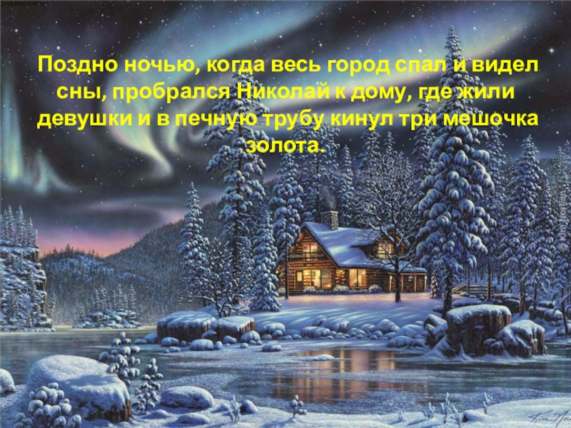 Слайд 8Поздно ночью, когда весь город спал и видел сны, пробрался Николай