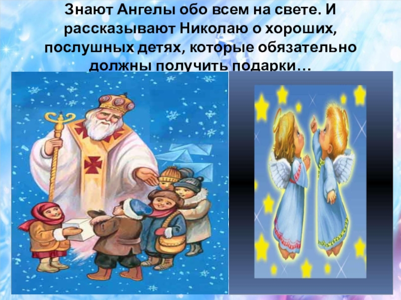 Слайд 14Знают Ангелы обо всем на свете. И рассказывают Николаю о хороших,