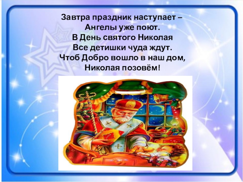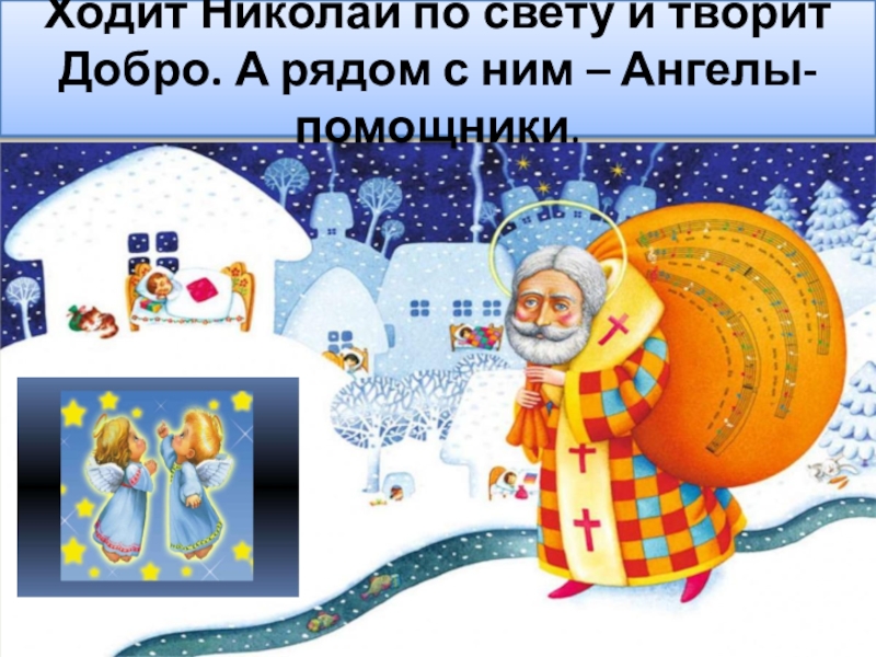 Слайд 13Ходит Николай по свету и творит Добро. А рядом с ним
