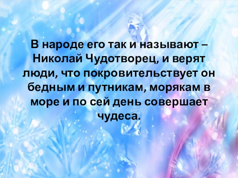 Слайд 12В народе его так и называют – Николай Чудотворец, и верят