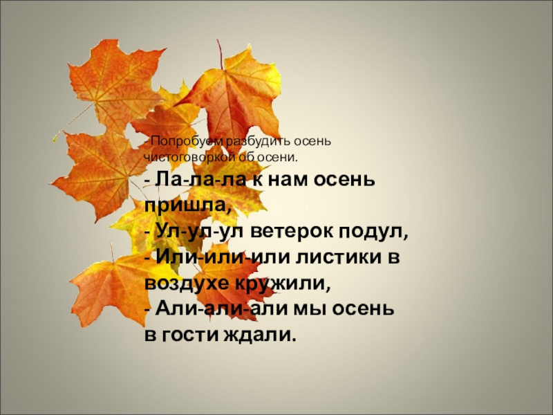 - Попробуем разбудить осень чистоговоркой об осени.