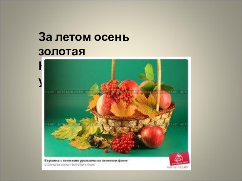 За летом осень золотая Несет корзинки урожая.