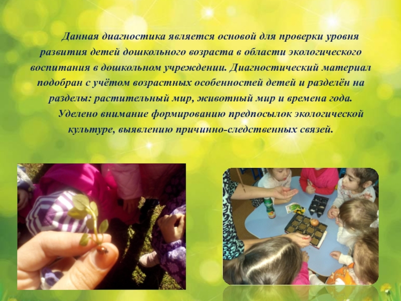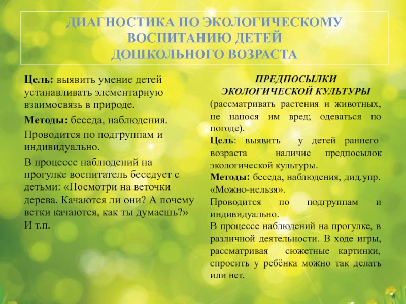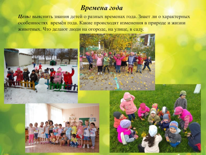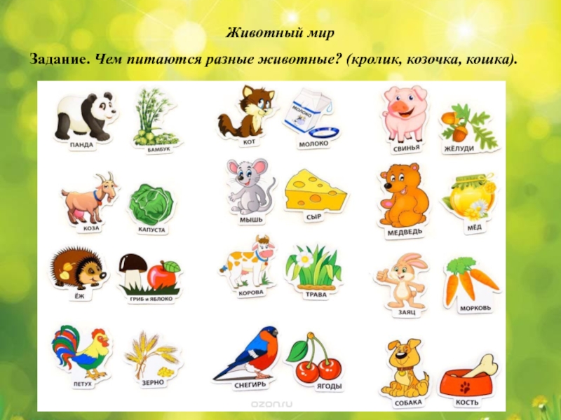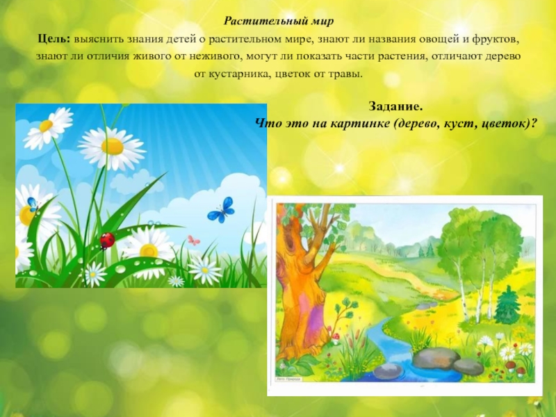 Цель: выявить умение детей устанавливать элементарную взаимосвязь в природе.