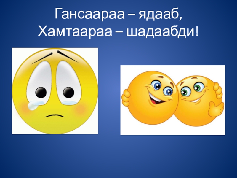 Слайд 10Гансаараа – ядааб, Хамтаараа – шадаабди!