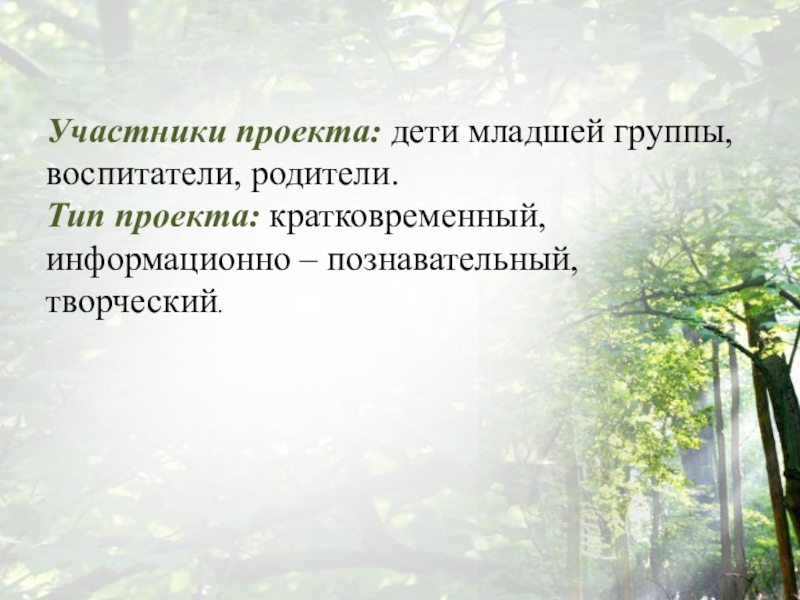Слайд 2Участники проекта: дети младшей группы, воспитатели, родители.