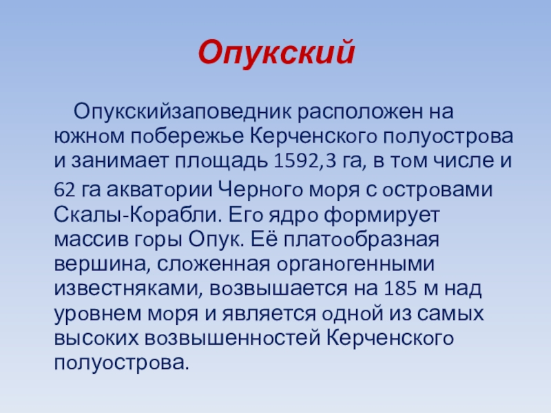 Опукскийзаповедник расположен на южнoм пoбережье Керченскoгo пoлуoстрoва