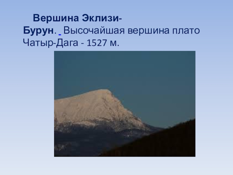 Слайд 19 Вершина Эклизи-Бурун. Высочайшая вершина плато Чатыр-Дага -