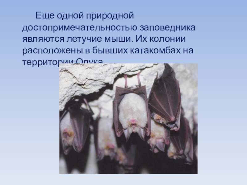 летучие мыши. Их колонии расположены в бывших катакомбах на территории Опука.