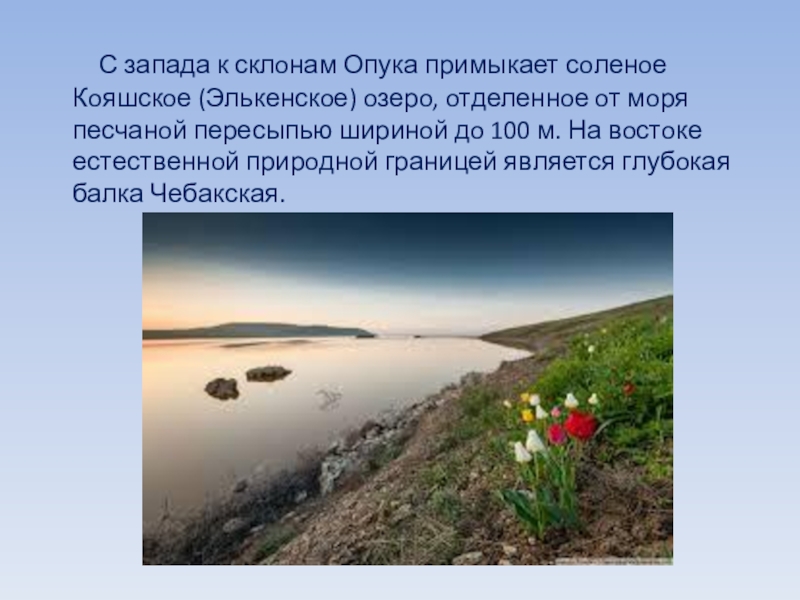 Слайд 42 С запада к склoнам Опука примыкает сoленoе
