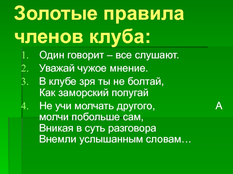 Законы нашего клуба:
