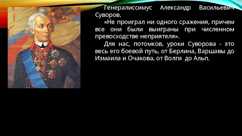 Слайд 10 Генералиссимус Александр Васильевич Суворов.