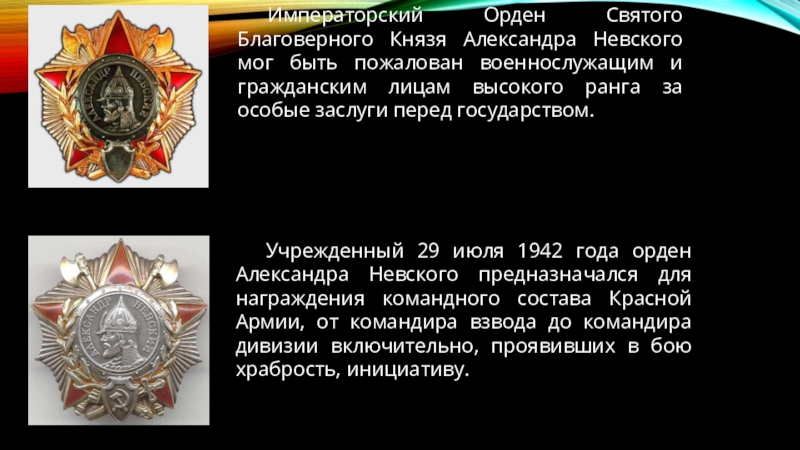 Слайд 5 Императорский Орден Святого Благоверного Князя Александра Невского мог быть пожалован военнослужащим