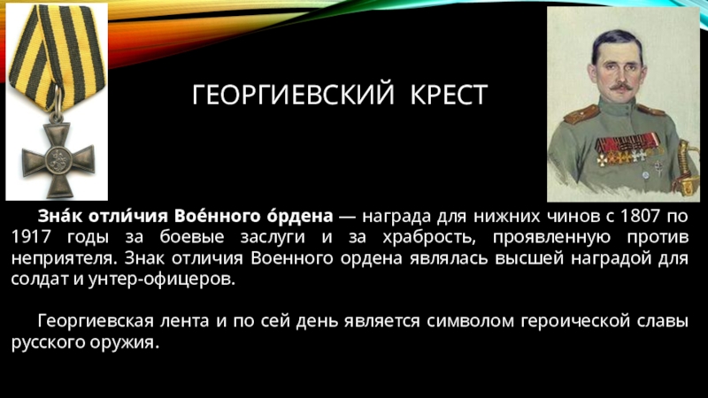 Георгиевская лента и по сей день является символом героической славы русского оружия.